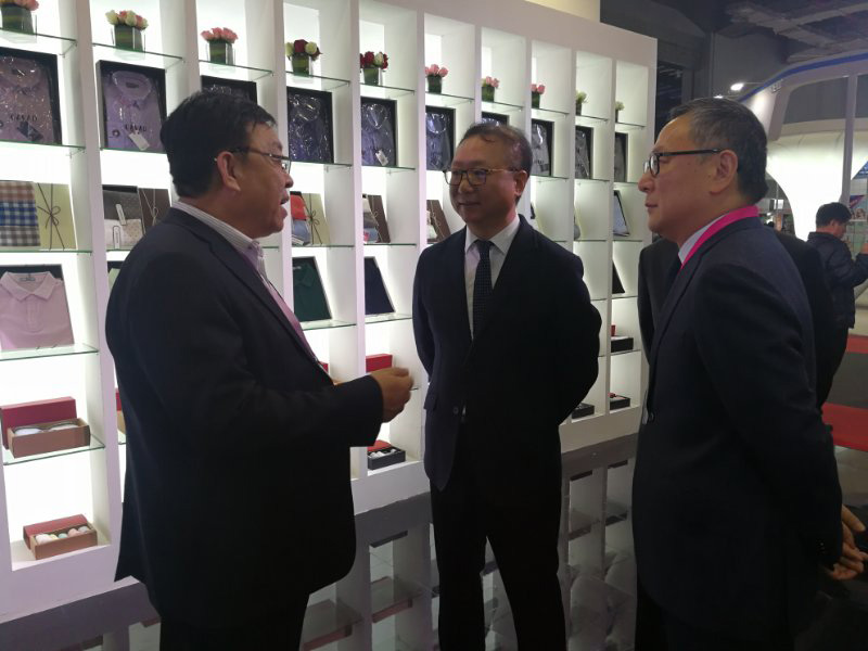 3、中國(guó)紡織工業(yè)聯(lián)合會(huì)會(huì)長(zhǎng)孫瑞哲等參觀康平納展位