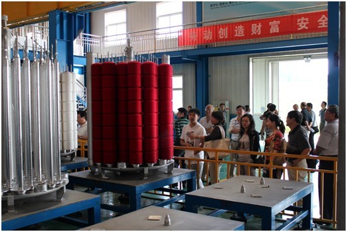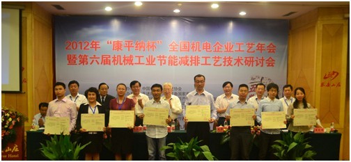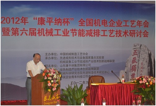 2012年全國機(jī)電企業(yè)工藝年會暨第六屆機(jī)械工業(yè)節(jié)能減排工藝技術(shù)研討會于9月12日—15日在泰安舉行,中國機(jī)械工業(yè)部原副部長陸燕蓀、工信部裝備工業(yè)司機(jī)械處處長王建宇、機(jī)械科學(xué)研究總院原副院長屈賢明、中國機(jī)械制造工藝協(xié)會第四屆理事會理事長、機(jī)械科學(xué)研究總院副院長王西峰、副理事長單忠德、王至堯、張科、陳隊范,山東省機(jī)械工業(yè)協(xié)會副會長管鳳森,泰安市行業(yè)辦公室副主任康蔭國出席會議,全國機(jī)電企業(yè)代表計200余人參加了會議,泰安市政協(xié)副主席朱永強(qiáng)到會祝賀并致辭。 康平納公司董事長陳隊范大會期間致辭,副總經(jīng)理鹿慶福做了《筒子紗數(shù)字化自動染色成套技術(shù)與裝備》的技術(shù)報告,與會人員對康平納高端紡織染整裝備產(chǎn)生了濃厚興趣,并于9月14日下午參觀了康平納科技產(chǎn)業(yè)園及染整生產(chǎn)線,對我公司研發(fā)生產(chǎn)的高端裝備產(chǎn)品給予了高度評價。